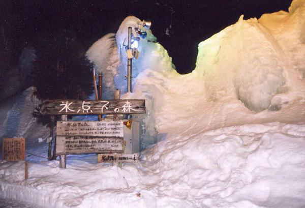 | 2月になると、御岳のふもと、大野郡朝日村胡桃島の「氷点下の森」では氷祭りが開催されます。「氷点下の森」は、秋神温泉を経営する小林繁さんが昭和41(1966)年から作ってきたものです。この森は、冬季、樹木や鉄柱に散水して作ります。氷祭りも地域の行事として定着しました。夜になると、ハロゲン灯、水銀灯などで赤、緑、黄色などにライトアップします。氷のクリスタルにはろうそくの灯がともり、会場には美しい音楽が流れます。そして、幻想の世界を散歩できます。 氷点下の森は、実際どの程度の気温環境でしょうか。森の標高は約1,000mあります。森の約2.5km下流の宮之前のアメダス観測所(標高約950m)のデータでは、たとえば1998年1月、2月の日々の最低気温は次のようです。1月は31日中1日、2月は28日中3日以外すべて氷点下でした。その中で、氷点下10度以上であった日は、1月2月とも各10日ありました。氷点下の森は、まさに氷点下の日々が続く中で完成することがわかります。 1月、2月の岐阜県の平均気温の分布図を作成すると、飛騨の東部(朝日村宮之前、氷点下の森付近)と、西部(荘川村六厩付近)の2ヶ所に気温の低い部分があります。県境の山々の稜線や山頂部に観測所があれば、そこが最も気温の低い場所になるはずです。しかし、アメダス観測所のある人里で気温が低いのは、上記の飛騨東部と西部になります。 氷点下の森で気温が低くなる理由は、第1に1000mという標高です。第2は、夜間の放射冷却による低温です。飛騨南東部に位置する氷点下の森では、案外雪は少なく夜間が晴天になる頻度が多くなります。晴天の夜間は、大地からの放射冷却がさかんになるためいっそう低温にはなります。(中田 裕一) |