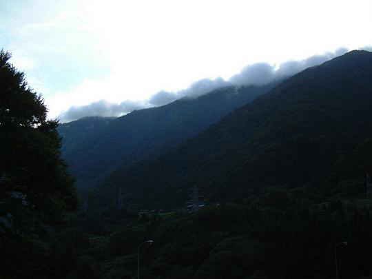 | 「みやざき雲」は、穏やかな晴天日の夕方、漆山岳の峰に沿って北から南に流れる雲です。漆山では、「みやざき」とも呼んで親しんでいた雲で、いつ頃誰が名づけたかはわかりません。地元の西漆山では、この雲が山の南寄りの峰の下に入ると翌日も必ず晴れとなり、峰の上を越えれば雨となるといいます。アンケート調査によると、みやざき雲は、春より秋ころ、夕方4時か4時半ころに発生します。西漆山から見ると、雲は漆山岳の稜線に沿って細長い雲の橋のように見え、所々青空が透けています。 みやざき雲に関しては、漆山岳山頂での気温観測や神岡(約10km南方)のアメダスデータから次の推測をします。みやざき雲は、晴天日の飛騨山脈周辺の山谷風の日変化の中で発生します。山風は、夜間から午前中、山地が冷やされることによる冷気流で重いため谷の下方へ流れます。谷風は逆に、日中から午後、山地が暖められて発生する暖気流で谷の上方へ流れます。 午前中を中心に神岡付近では南寄りの山風が吹きます。神岡付近に北寄りの風(谷風)が侵入する午後、特に風速の大きくなる午後4時過ぎにみやざき雲が発生します。つまり、富山方面からの北寄り風は、漆山岳周辺で最初に1300m級の山地にぶつかります。そこで地形による気流の強制上昇でできた雲がみやざき雲です。 みやざき雲発生時、高気圧下で大気の安定度が高い(下降気流が卓越)ため、みやざき雲は、土地の人が言うように漆山岳を吹き越した後、南に流れ南方の山すそに下降して消えます。しかし同じ晴天日でも、大気がやや不安定(上昇気流が卓越)な場合は、漆山岳を吹き越した後、雲が下降せず南方の山向こうへ流れると思います。(中田 裕一) |