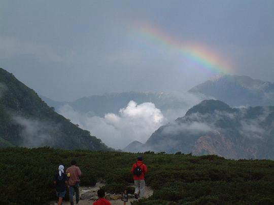 | 夕立後の虹(三俣山荘より 2001年8月14日) |