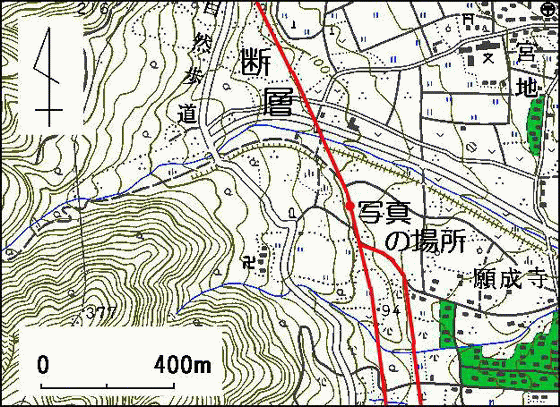 池田山断層(上) 地表に現れぬ断層面 |
