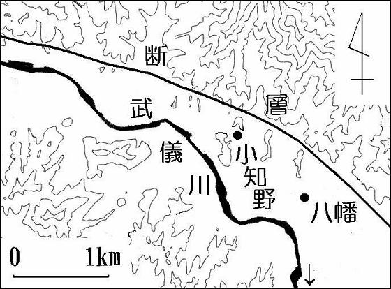 武儀川断層(下) 鞍部は道や峠に利用 |