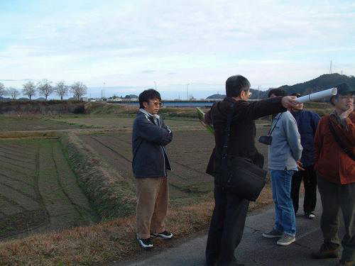 | 昨年、12月22日(日)に、岐阜の地学を学ぶ会との共催で岐阜県の活断層懇談会が開催されました。場所は関市の関商工高等学校でした。飛騨地学研究会からの参加者は、下畑、岩田、寺門、鷲見、清水治、三宅、中田(兼任会員を除く)の各会員7名でした。岐阜の地学を学ぶ会と合わせると、20名近くの参加者がありました。 懇談会の目的は次のようです。岐阜県は活断層の密集地帯です。その活断層の現況を調査、把握して、一般の方に役立つような、また教材として利用できるような出版物にまとめることです。 とりあえず、今回の懇談会では、岐阜県各地の活断層の資料や写真を持ち寄って、発表会を行うことになりました。跡津川断層、江名子断層、阿寺断層、根尾谷断層、華立断層などについて、地図や資料、写真を用いた発表がありました。 岐阜大学の小井土先生は、岐阜県からの依頼による「岐阜県の活断層図とその解説」についての説明をされました。その中で次の話が印象に残りました。最初、地図だけを作ってほしいという依頼であったが、地図だけでは解釈が一人歩きしてしまうので、解説も合わせてという条件で引き受けたそうです。 もうひとつ、なんとなく使っている、断層、活断層、地震断層、断層地形という言葉についてです。地震断層は、地震時に動いたという人の記録のある断層(明治期の濃尾地震と根尾谷断層など)です。活断層とは、地震断層も含めて第四紀に動いた形跡のある断層のことです。 それから、断層地形についても注意が必要です。根尾谷にある水鳥の断層崖のように実際に地面がずれた地形と、断層上が侵食されたケルンコルのような地形、断層運動の繰返しによる断層谷のような大規模地形、これら地形の意味の区別が必要です。 懇談会の後、岐阜大学の小井土先生の案内で、関市の梅原断層の地形を見学しました。天気は快晴。最初、岐阜県立博物館前の津保川に行きました。川側が逆に高い階段状の地形がありました。川の反対側が総体的に沈下したということでした。それから、直線状に西に向かい熊野神社に行くと階段状の地形がありました。沈下した側は、水はけが悪く洪水時に沈水被害が多いという話でした。実際付近の家は、輪中のように石垣の上に建てられています。その後解散しました。 |