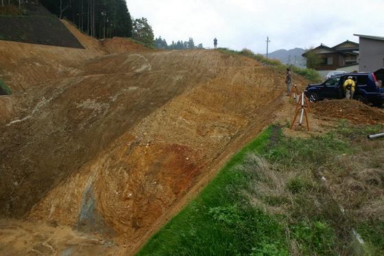 昨年、寺門会員より太江断層の露頭が発見されたとの連絡があり、緊急に巡検を行いました。期日は、2008年11月9日、天気はあいにく曇りですが、飛騨市古河町太江地内のバイパス工事の現場に断層断面が現れていました。